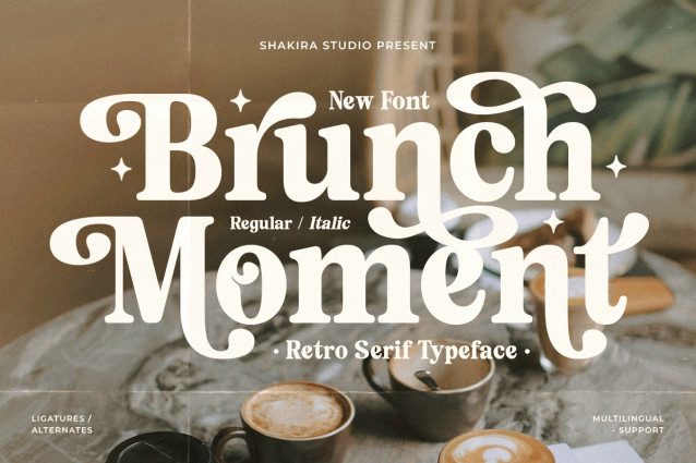 Brunch Moment Font is a luxurious retro display serif font available in regular and italic styles. It features elegant alternates and stylish ligatures, making it perfect for branding, editorial designs, social media, packaging, and more. Its timeless charm adds sophistication to any project.