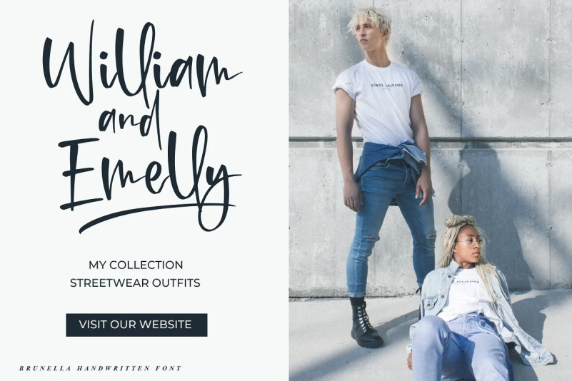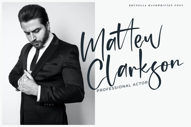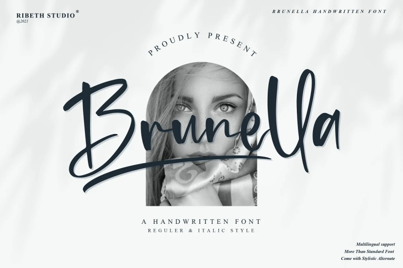 Brunella Script Font is a stylish Handwritten font with 2 styles: Regular, Italic and includes a full set of uppercase and lowercase letters, multilingual symbols, numerals, punctuation, alternates, swash, and ligatures. The font is perfect for branding, wedding invites, and cards, Christmas card, branding, logos, product packaging, invitation, quotes, t-shirt, label posters, this is perfect for branding, logos, invitation, and more.