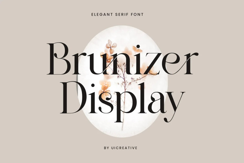 Brunizer Font – Display Serif Font. Modern Display Serif font that feels beautiful classy, elegant, and modern. This font is ideally suited for a wide variety of projects, such as signature, stationery, logo, wedding, typography quotes, magazine or book covers, website headers, clothing, branding, packaging design, and more. Also, fashion-related branding or editorial design displays both masculine and feminine qualities.