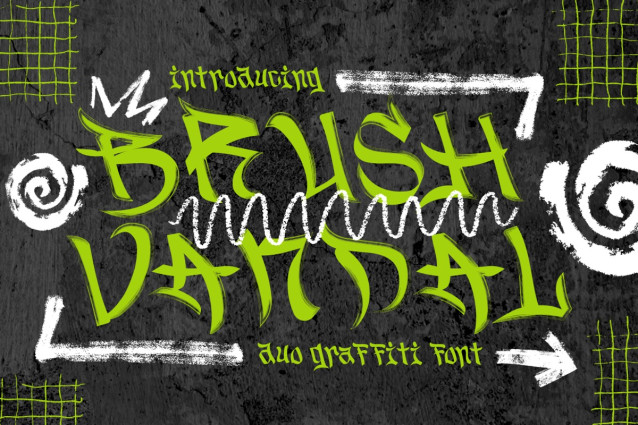 As a style, Brush Vandal Duo Graffiti Font sits firmly in the graffiti and street art space. It blends hip hop culture with modern graphic needs, resulting in a playful but edgy personality. The duo concept provides visual variety, allowing designers to create contrast within one project while keeping a consistent voice. This font works especially well for logos, branding systems, posters, headlines, advertisements, stickers, packaging, and editorial titles. It is also suitable for magazine covers, book covers, film titles, merchandise, and creative business branding. Brush Vandal Duo Graffiti Font helps brands communicate rebellion, creativity, and freedom. Designers can rely on it to create bold statements, urban narratives, and strong visual identities. The font performs best when attention and impact are required quickly.