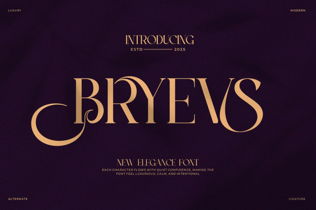 Bryevs Font is a elegant and classy font type for all branding and logo designs. This elegant and classy Serif font has a beautiful character. This font is suitable for invitation card designs, cool logos, movie titles, movie names, business cards, book titles, brand names, and various other designs. Bryevs Serif is a smooth serif font that exudes sophistication and the moment. Its stylish ligatures make this font a perfect partner for any project.