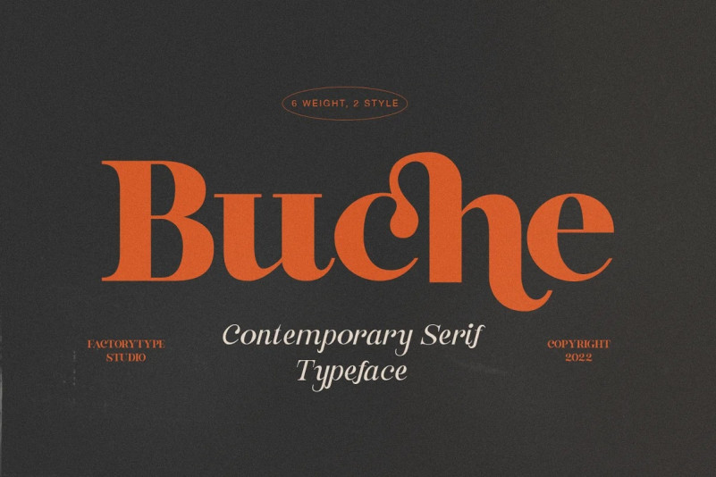 Buche Font – a brief introduction Buche is a contemporary serif font designed for logo and brand design. It exudes an air of affluence and sophistication, despite its curvy appearance. The ligature fonts will come in handy for whatever your imagination can think up!