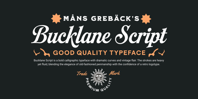 Bucklane Script Font is a bold calligraphic typeface with dramatic curves and vintage flair. The strokes are heavy yet fluid, blending the elegance of old-fashioned penmanship with the confidence of a retro logotype. With decorative swashes and striking uppercase forms, it adds character to every word–whether it’s carved onto a whiskey barrel or lighting up a marquee.