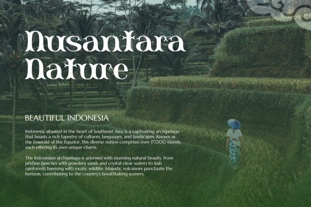 This font is perfect for branding projects, logo concept designs, poster titles, tourism design activities, billboards, tourism magazines, product packaging businesses, tourism film projects, websites and much more!