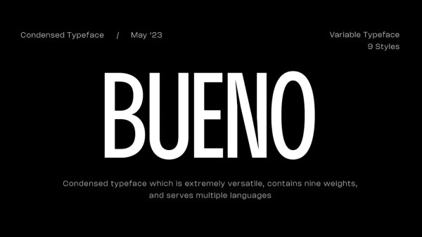 Bueno Font, a condensed display Sans typeface that demands attention and adds a unique flair to any design. Bueno has its own magnetic personality, making it perfect for branding, packaging, editorial, and much more.