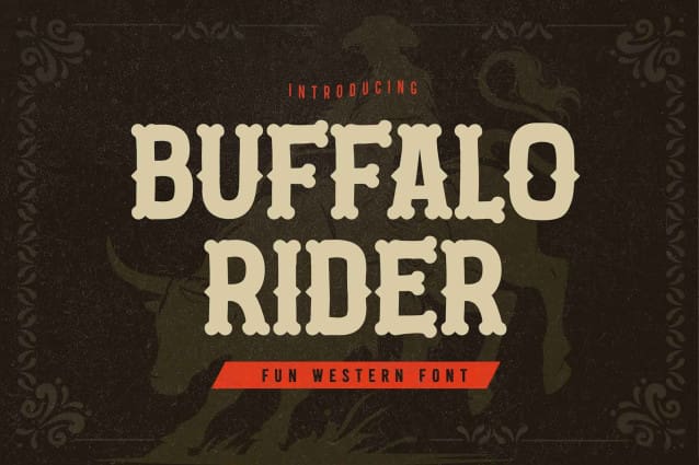 Buffalo Rider font is made for personal use. Get the full version of the fonts if you want to use it for commercial purposes by purchasing the licenses here: https://gassstype.com/buffalo-rider-cowboy-display-font/