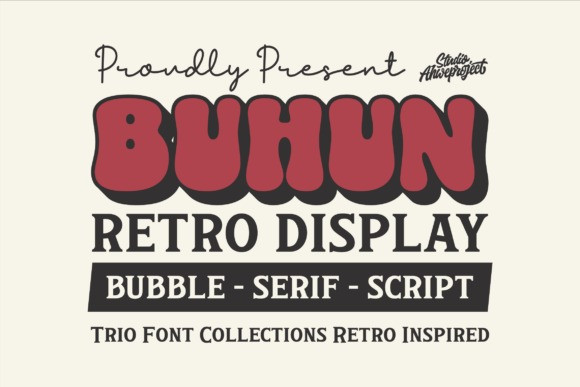 Buhun Retro Font Trio a retro-inspired trio collection that brings vintage cool to the modern age.This Buhun typeface captures the funky, groovy energy of the 70s with its thick, pillowy “bubble” letterforms and classic drop shadows. Whether you are designing for a retro-themed café, streetwear apparel, or a music festival poster, the Buhun font provides an instant blast of nostalgia and style.