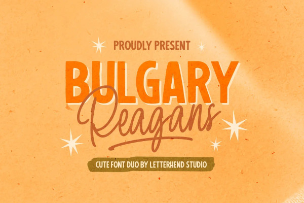 Bulgary Reagans Font is a pair of font that brings the playful looks with casual feel. The handwritten sans serif combined with the natural hand writing script are the perfect match for you who needs a typeface for headline, logotype, apparel, invitation, branding, packaging, advertising etc.