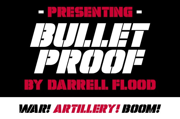 Bulletproof Display Font, A heavy impact army-like font in a slick, stencil, yet modern style. Perfect for war themes, pitched battles, alien attacks and general use!