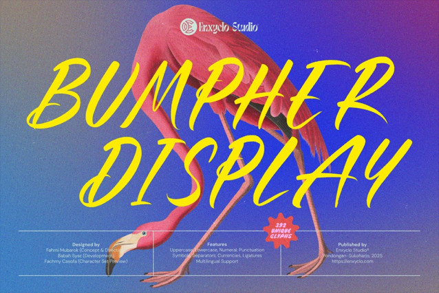 Bumpher Script Font is a vibrant, energetic script font designed to bring a bold personality to your creative projects. Inspired by retro hand-lettered signs and modern brush calligraphy, this font fuses nostalgic flair with contemporary aesthetics. Each letter is crafted with sweeping strokes and expressive curves, perfect for making your headlines pop and your branding stand out.