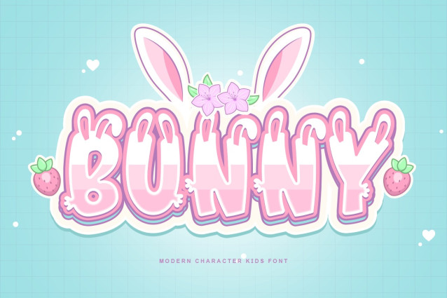 Bunny Character Kids Font A Display typeface, Bunny Modern Character Kids Font features cute and modern font design elements. Each letter of this font is easy to distinguish. You can see it cute from far or near. The letters in this font is shaped like a bunny ear, bubble-shaped, and handwritten. This font is illlegible. This typeface is the best font for kids’ supplies, like school supplies, kids’ clothes, and water bottles. Bunny Modern Character Kids Font can use on roadside posters and billboards containing promotions or product announcements about children. This font can use on book and magazine covers. This font is best for writing short sentences or words as it will look simple and clean. It can use as beverage packaging and cell phone cases. Bunny Modern Character Kids Font can use as a digital font. Perfect for animated videos and can be used as a title or subtitle that appears in the intro to write thank-you notes outside of the video. This font can be included in cartoons and fairy tales. Of all these explanations, the Bunny Modern Character Kids Font is the best children’s font. Our display font collection is compatible to use as; Figma Fonts, Canva Fonts, Freepik Fonts, and Adobe Fonts. They also work as Windows Fonts, and Apple Fonts. For your social media needs, you can use and install fonts in our collection of Espot & Futuristic fonts to use as Instagram Fonts, Facebook Fonts, and Twitter Fonts.