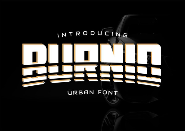 Burnid Display Font, an incredible sports font boasting modern stencil. Perfect for capturing the essence of fast car racing sports titles, running matches, cycling events, automotive game logos, monograms, and other contemporary dynamic text. BURNID stands out with its excellent legibility and size, evoking a sense of power and speed. Embrace the dynamic allure of Adegor as it elevates your designs to new heights, embodying the exhilaration and intensity of sports.