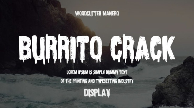 Burrito Crack Font is the ultimate horror display font! it caters to a global audience. It is perfect for posters, marketing materials, chilling movie titles, Death metal logotypes, Halloween crafts, and an array of spine-tingling projects. Unleash the terror with Burrito Crack!