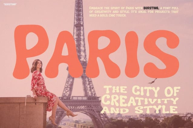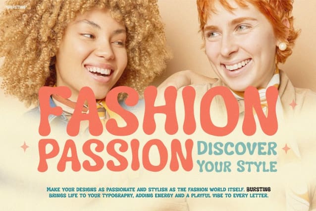 If you’re looking for a way to capture the charm of the ‘70s, ‘80s, or early ‘90s, Bursting Display Font is the perfect choice. Not only does it add energy and fun, but it also remains stylish and adaptable. You can pair it with bright colors and textured backgrounds for a vintage vibe. Alternatively, mix it with minimalist elements for a striking contrast.