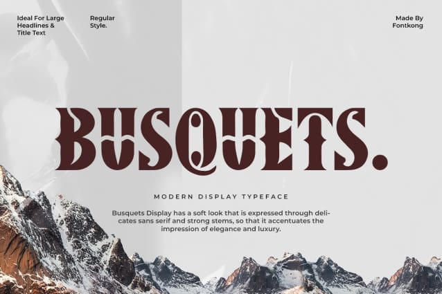 Busquets Font – Modern Unique Display Font is the best modern font and is suitable for many projects. This font can be used as a digital font, such as on the web, video, and other displays, and as a printed font on posters, banners, and book covers. This type of font can be printed in small or large sizes and still looks good up close or from a distance.