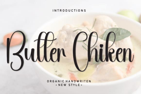 Butter Chiken Font is a sweet and friendly handwritten font. Fresh and neat, this font is ideal for writing wedding invitations, cards, or any other design that might need a fun touch!