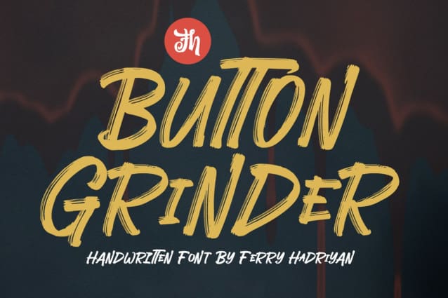 Button Grinder Font is display font with handwritten dry brush style, ispired by halloween event and grunge rock style, with opentype feature include of the font. Suitable for design, element design, wedding, event, t-shirt, logo, badges, sticker, and awesome work, etc…