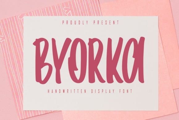 Byorka Font – Handwritten Display Font. It looks beautiful on a variety of designs requiring a personalized style, such as wedding invitations, thank you cards, weddings, greeting cards, logos and so on. This font is PUA encoded which means you can access all of the glyphs and swashes with ease!