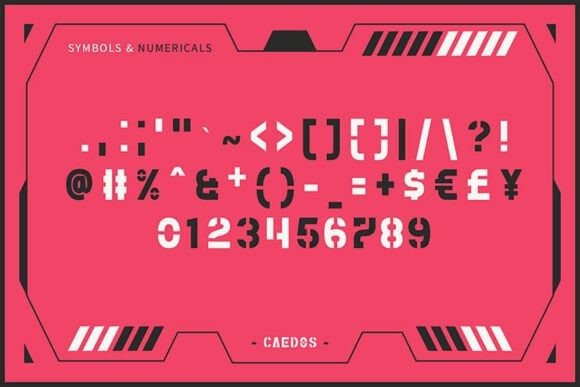 Caedos Font is a futuristic stencil font designed with sharp precision and tech-inspired geometry.Ideal for sci-fi branding, video games, user interfaces, and cinematic titles, this font brings a high-tech, modular aesthetic to your designs.