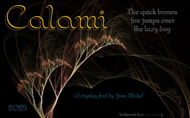 Calami Font – This font is inspired by an exercise in penmanship from “The Zanerian Manual of Alphabets and Engrossing”, book digitized by David Grimes (https://masgrimes.com/)