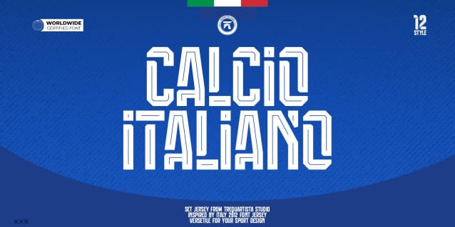 Calcio Italiano font is made for personal use. Get the full version of the fonts if you want to use it for commercial purposes by purchasing the licenses here: https://studiotrequartista.gumroad.com/l/calcioitaliano