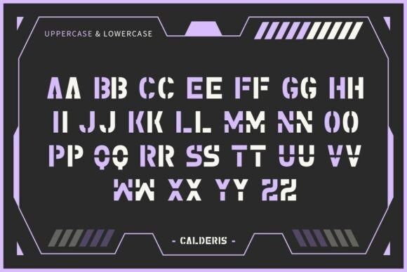 Calderis Font is a cutting-edge display typeface designed for tech-forward creatives, gaming titles, sci-fi branding, and digital media. Its bold stencil design and geometric cuts give it a cybernetic edge that feels both modern and militaristic. With a strong industrial feel and high-impact style, Calderis is perfect for posters, UI design, esports logos, movie titles, and more.