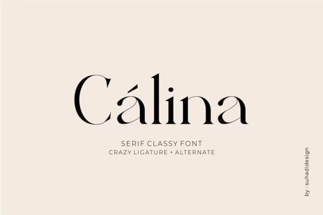 Calina Serif font is a serif font with a very beautiful minimalist appearance, lots of ligatures + alternates. comes with a classy modern style to become a market favorite. We keep this font looking elegant, classy, easy to read, stylish, attractive and easy to use. Calina Font is a great choice for modern designs, magazines, classy designs, retro designs, newspapers, books, brand names, branding and other projects. The Calina Serif font is here to improve the quality of your designs.