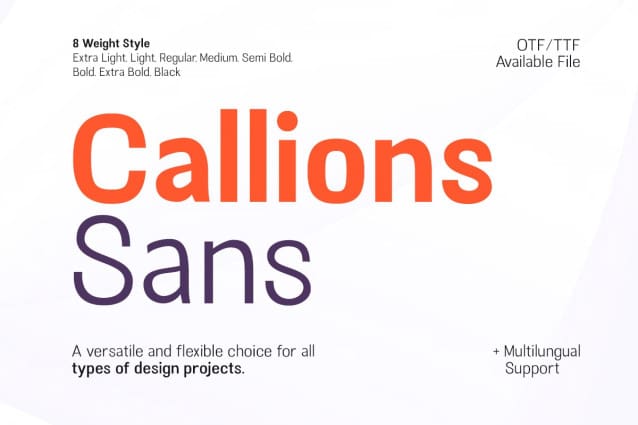 Callions Font Family, basic sans serif family with contemporary look designed to offer a minimalist, versatile, and modern typeface that suitable for any purposes. With 8 weight style, from Extra Light to Black, that you can choose to use for any project such as sign, quote, branding, etc. This font family also support multi language!