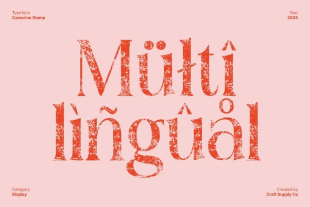 This font merges the grace of classic serif typography with the character of stamped, tactile texture resulting in a distinctive typeface that feels elegant, expressive, and visually captivating. Use it to create designs that radiate sophistication while embracing a touch of handcrafted drama. This font ensures every layout stands out with refined beauty and artistic depth.