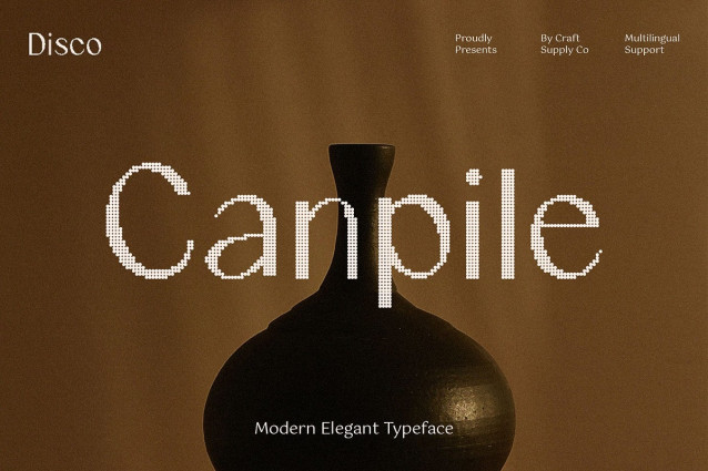 Canpile Disco Font – This is a modern sans serif font built on clarity and precision. Its confident letterforms feature clean lines and a balanced structure, making it ideal for designs that demand strength and legibility. Whether in digital or print applications, the font maintains a sleek and polished appearance.