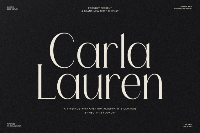 Carla Lauren Font is a modern display typeface that embodies sophistication with a subtle touch of drama. Designed to stand out in headlines, logos, and editorial layouts, its graceful curves and refined contrast speak the language of timeless elegance.