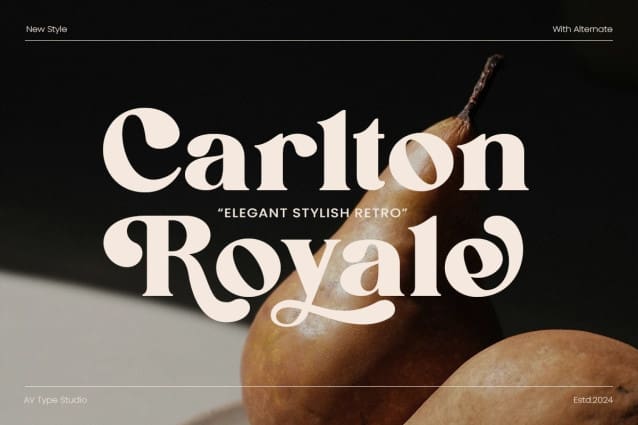 Carlton Royale Font, a bold and stylish serif font designed to evoke a sense of nostalgic charm while maintaining a modern flair. With its retro and classic aesthetic, it is perfect for display projects that aim to stand out and make a statement.