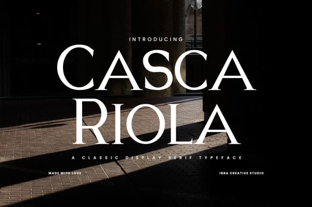 This font is used only for demos (Demo license). If you want to use this font for commercial use please contact: https://ibracreative.com/index.php/product/casca-riola-a-classic-display-serif-typeface/