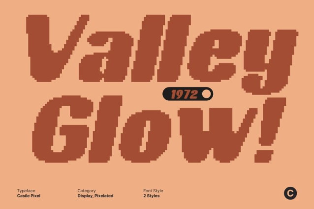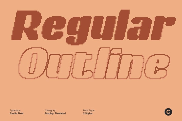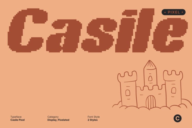 Casile Pixel Font This is a bold sans serif font featuring thick, confident strokes and a retro-inspired structure enhanced by a subtle pixel character. This combination creates a strong visual presence that feels nostalgic yet fresh, making the font instantly eye-catching.
