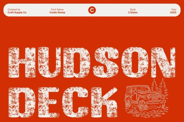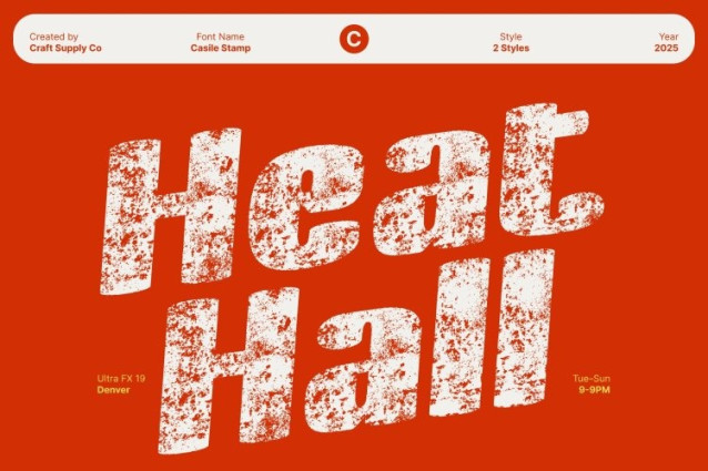 This font excels in display applications where visibility and personality matter most. Whether used for headline treatments, branding identities, event posters, or promotional graphics, the font ensures both readability and stylistic impact. Its bold structure commands attention, while the stamped texture creates a memorable, visually engaging experience.