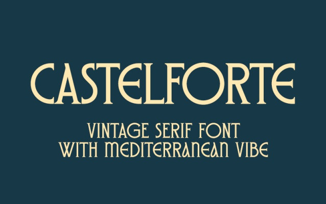 Castelforte Font – Neo-Classical font with a condensed structure, Castelforte is inspired by classical antiquity, drawing specific inspiration from Old Roman and Ancient Greek typography. It has strong, geometric serifs, high contrast between thick and thin strokes, and a monumental quality reminiscent of ancient stone carvings.