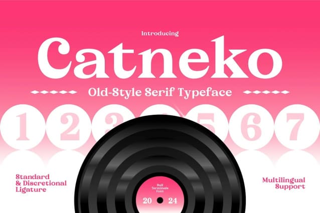 Catneko Font – a timeless blend of vintage charm and modern elegance, meticulously crafted to bring a touch of sophistication to your design projects. This Old-Style Serif Typeface pays homage to classic typography while adding a contemporary twist, making it the perfect choice for a wide range of applications.
