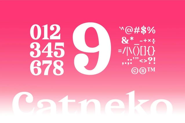 Catneko features: Uppercase & Lowercase Punctuation & Numbers Multilingual Support Ligatures Alternates