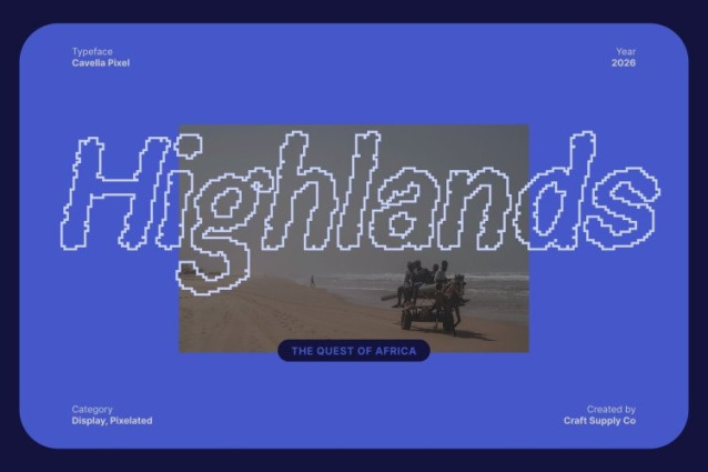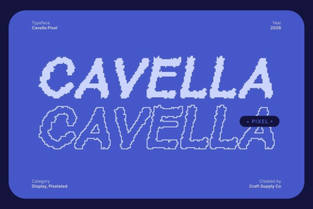 Cavella Pixel Font This is a sophisticated display font featuring low-contrast strokes combined with subtle pixel detailing. Its clean, contemporary structure gives it a minimalist and modern aesthetic, making it perfect for projects that demand clarity, elegance, and a display-ready presence. The pixel treatment adds a refined digital touch, enhancing its overall visual appeal.