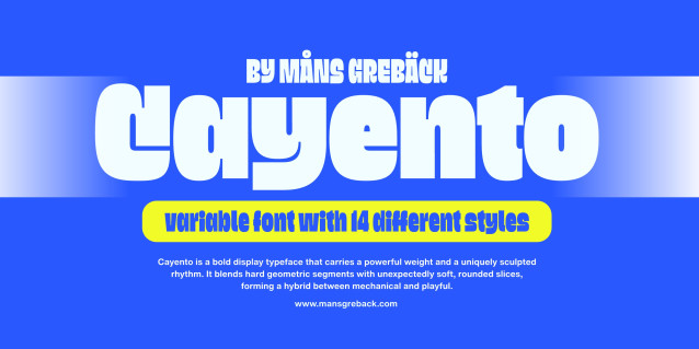 Designed by Mans Greback, a Swedish type designer known for his wide-ranging and energetic font creations. With a passion for expressive letterforms and technical precision, his work bridges artistic character with practical performance.