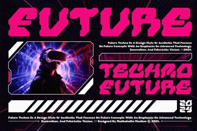 Ceimo Futuristic Font – Modern Techno Font. This Font is a type of lettering that features a futuristic design inspired by advanced technology. This font reflects the digital era and technological advancements, bringing a sense of modernity, innovation, and energy to any design. With sharp lines, geometric letter shapes, and futuristic elements, this font is suitable for projects related to technology, robotics, science, and modern lifestyle. This font are often found in logos, website designs, posters, and other creative projects that require a futuristic touch.