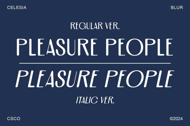 Experience the captivating allure of Celesia Blur’s blur vibes, adding a dynamic touch to your designs. The subtle blur effect infuses each character with movement and depth, making it perfect for grabbing attention in headlines, banners, and other display applications.