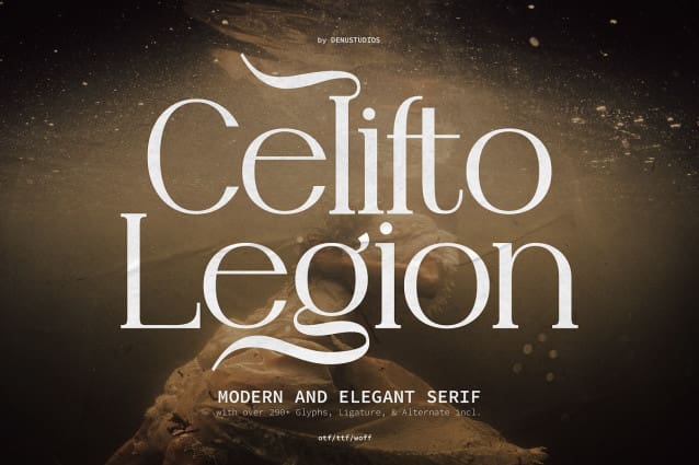 Celifto Legion Font | Modern And Elegant Serif, from Denustudios, suitable for any projects such as: logos, branding projects, homeware designs, product packaging, mugs, quotes, posters, shopping bags, t-shirts, book covers, name card, invitation cards, greeting cards, label, photography, watermark, special events, and all your other lovely projects that need a Modern And Elegant Serif taste.