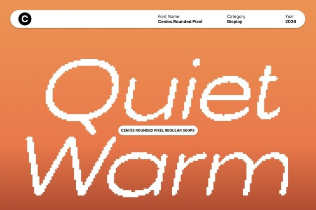 Cenios Rounded Pixel Font This is a modern sans serif font that combines low-contrast letterforms with subtle pixel detailing. Its minimalist design ensures a clean, professional appearance, making it ideal for corporate and business-oriented applications. The pixel elements add a contemporary, digital-inspired edge, giving the font a unique character while maintaining clarity and legibility.