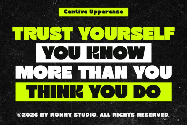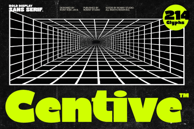 Inspired by retro-futuristic grids and modern tech aesthetics, Centive blends bold minimalism with a dynamic urban feel — making it perfect for high-impact visual communication. Its solid structure and clean cuts create a confident, contemporary look that works effortlessly across digital and print designs.