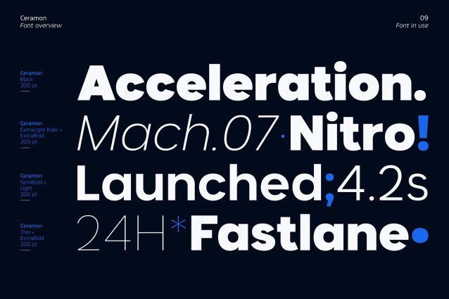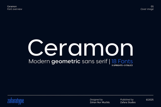 Ceramon Font is a modern geometric sans serif that blends minimalist structure with refined curves and meticulous detailing. Its clean, balanced letterforms ensure high legibility and lend a contemporary, versatile tone—ideal for branding, editorial, UI design, signage, packaging, and more.