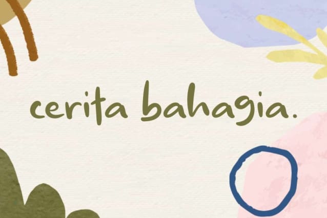 Cerita Bahagia Font is a cute, charming and playful display font with a casual appearance so well designed to become a favorite. Whatever the topic, it will become part of your font library and work well for use in your design needs, such as album cover, birthday invitation, blogs, book titles, branding, business cards, greeting cards, logo design, packaging, poster, quotes, screen printing, signage, sticker, write on the merchandise, etc.
