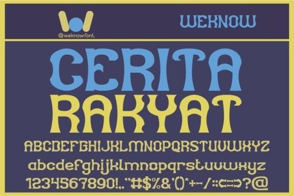 Cerita Rakyat Font is a cool and modern display font. It is the best choice for creating eye catching logos, branding and quotes. Every letter has a unique and beautiful touch, which will make your design come alive!