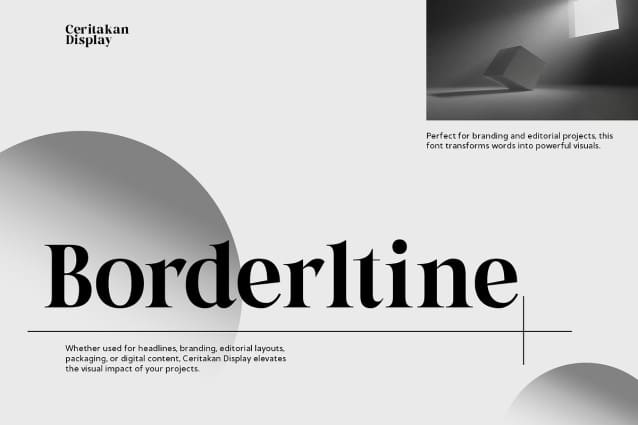 Step into timeless elegance with Ceritakan Display. Where bold serifs meet refined curves, every detail speaks of sophistication and versatility. Perfect for designers who want their work to radiate confidence and make a lasting impression. Make a statement, tell your story—Ceritakan Display does it all.