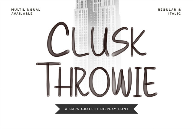 CF Clusk Throwie Font, a caps-only graffiti display font inspired by authentic street art and tag culture. With its spray-painted edges, marker-style strokes, and rebellious attitude, this font delivers an unapologetic dose of urban grit and underground energy. Whether you’re designing for album covers, apparel, extreme sports branding, posters, urban events, or edgy social content, CluskThrowie brings an instant hit of graffiti authenticity and raw expression. Available in Regular and Italic styles, it’s built for creatives who want to make a statement.
